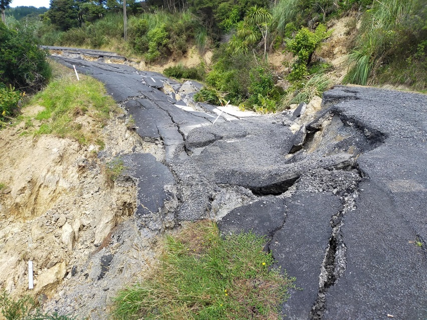 A large deep-seated slip caused the road to slump by about two metres, just south of Port Waikato Camp, which means the road is impassable.