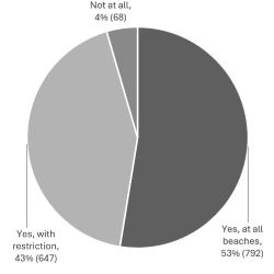 454 answered yes, 771 answered yes but with restrictions, 288 did not think they should be allowed on the beach.