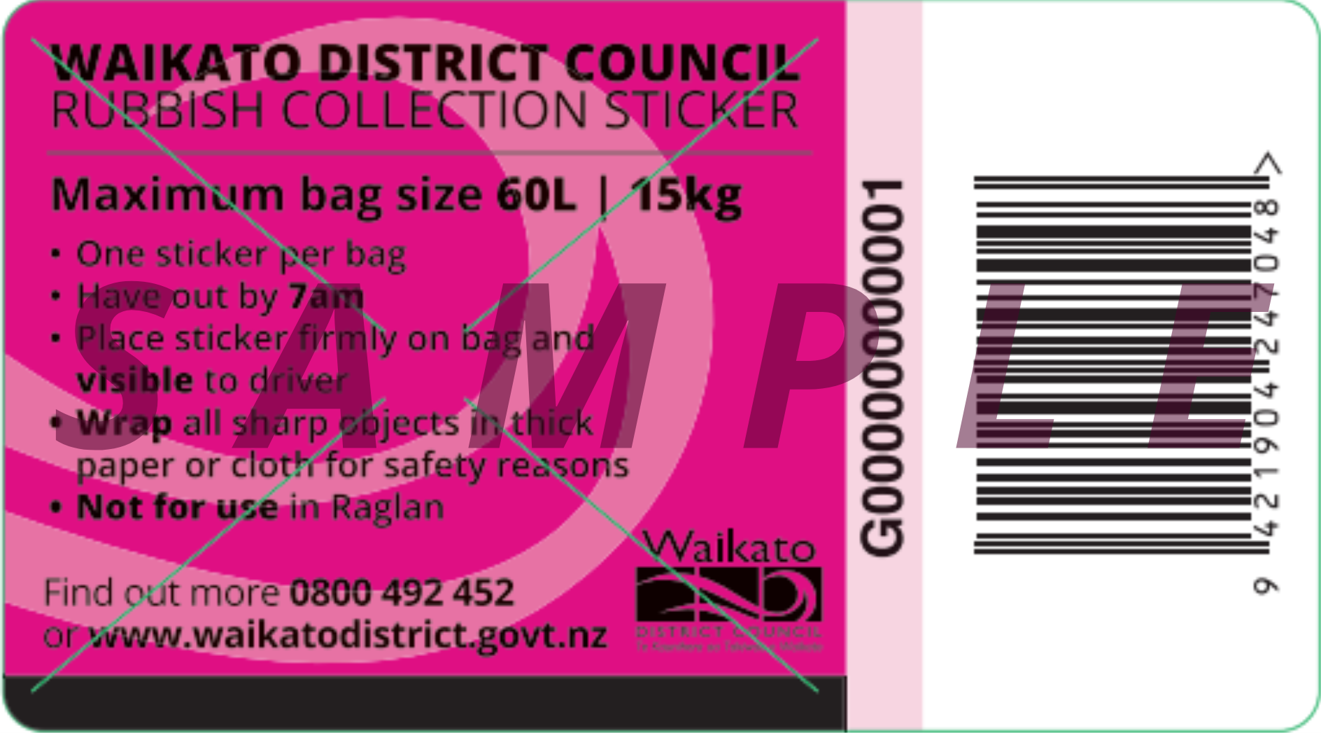 Those in Tuakau are supplied with a 120L wheelie bin for rubbish collection.