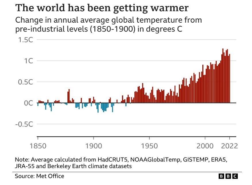 The rise of industry and modern living have increased C02 (carbon dioxide gas) by about 50% since pre-industrial times, with billions of tonnes more being released each year. Scientists agree that global warming needs to be kept to 1.5 degrees. Currently estimates put us at 2-3 degrees rise. This could have irreversible effects on the planet and impact us.